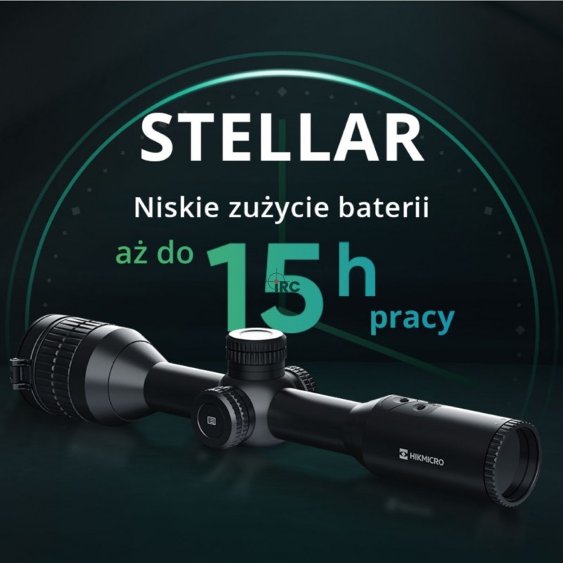 Luneta termowizyjna Hikmicro Stellar SH50 wyposażona jest w sensor 384x288 z czułością niższą niż 35 mK i w rozmiarze piksela 12 μm. Posiada wyświetlacz typu OLED o wielkości 0.39'' i rozdzielczości 1024x768px przedstawiający w pełni wyraźny i przejrzysty obraz z pełnią kontrastu. Obiektyw celownika o średnicy 50 mm i powiększenie stałe 3,8x umożliwiają celne strzelanie na średnim dystansie. Pole widzenia to 5.28° × 3.96°