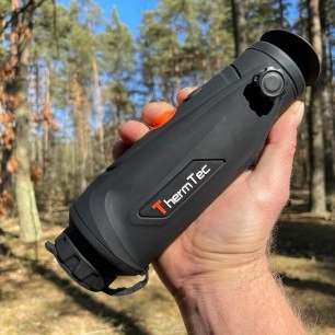 Kamera Cyclops 325 to kompaktowe urządzenie termowizyjne mieszczące się w dłoni, stworzone do realizacji wymagających zadań w łowiectwie, ratownictwie czy ochronie mienia. Waży poniżej 450g a jej wymiary to 67×63×190mm