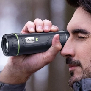 Kamera Termowizyjna PIXFRA MILE 2 M413 z sensorem 384x288px / 12 μm z zasięgiem ponad 1500m. Obiektyw 13mm. Wyświetlacz OLED o wielkości 0,32'' i rozdzielczości 800 x 600 px. Powiększenie optyczne 1.4x. Czas pracy 8h. Zoom cyfrowy 8x.