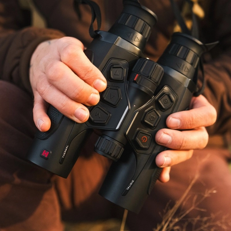 Lornetka HIKMICRO HABROK HE25L LRF 2.0 wyposażona jest w dwa niezależne okulary do obserwacji termicznej oraz noktowizyjnej + dziennej. Obraz wyświetlany jest na wyświetlaczu OLED o rozdzielczości 1920x1080px. Wielkość ekranu 0,49''