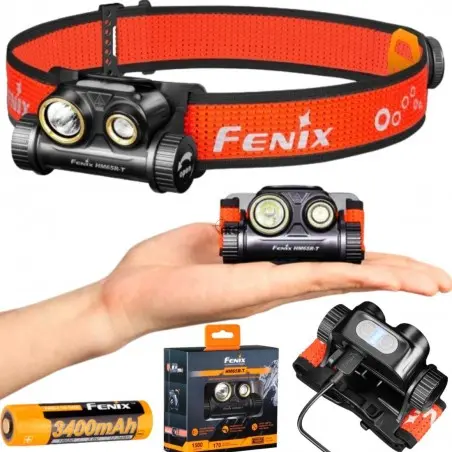 Fenix HM65R-T to nowa wersja bestsellerowej latarki czołowej, która dzięki zastosowaniu nowej diody SST-40 oraz opatentowanego systemu regulacji opaski zapewnia mocniejszy strumień światła 1300lm. Posiada 3 tryby świecenia oraz około 300h pracy. Wymienny akumulator