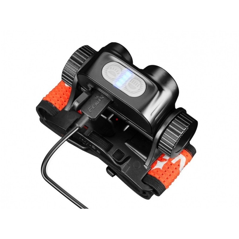 Fenix HM65-T zasilana jest akumulatorem 18650 (w zestawie), który można także zastąpić 2 bateriami jednorazowymi CR123. Zalecamy jednak stosowaniu akumulatora 18650, który gwarantuje pełne parametry światła oraz dłuższą pracę latarki. W tym modelu zainstalowano port USB-C, który umożliwia ładowanie akumulatora bez wyciągania  z urządzenia. Jest to bardzo funkcjonalne rozwiązanie w sytuacji, kiedy planujemy długą pracę z wykorzystaniem latarki czołowej.