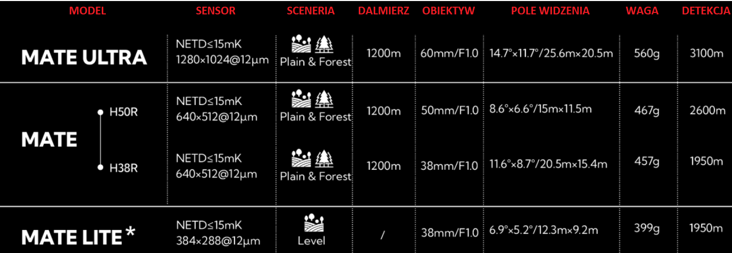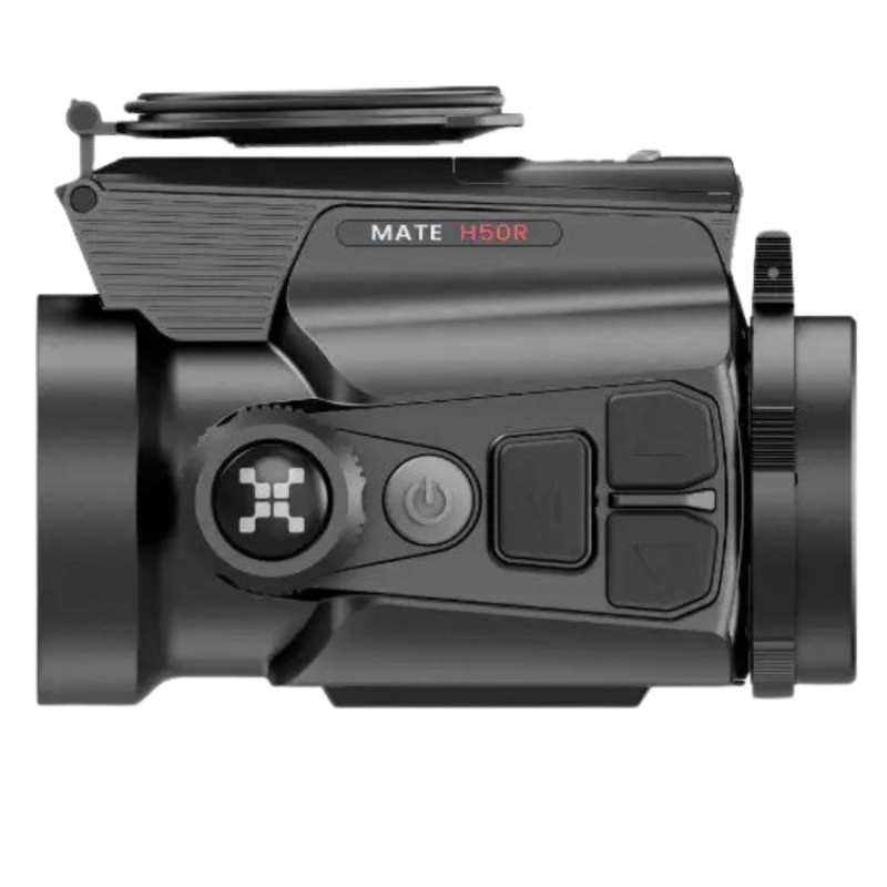 Nasadka termowizyjna NOCPIX MATE H50R z wbudowanym dalmierzem laserowym o zasięgu 1200m z obiektywem 50mm / F1.0 i sensorem 640x512px / 12um. Wyświetlacz AMOLED o rozdzielczości 1920x1080. Częstotliwość odświeżania 60Hz. Zasilana akumulatorami 18650.